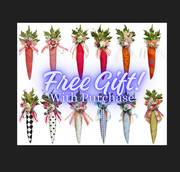 FREE GIFT WITH PURCHASE of Mark Roberts items totaling $100 or more. Enjoy a free jeweled carrot, as our gift, when you purchase $100+ of Mark Roberts collectible or decor pieces.