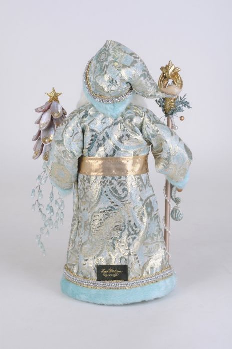 Our Coastal Opulence with Staff Santa is great for any shelf, mantle, and countertop. The quality is unmatched with this decorative piece’s hand-painted face, inset eyes, unique fabric, and detailed accessories. With this item's nautical design, shiny Paua shell tree, and elegant touch, he's sure to add character and style to any seaside home.