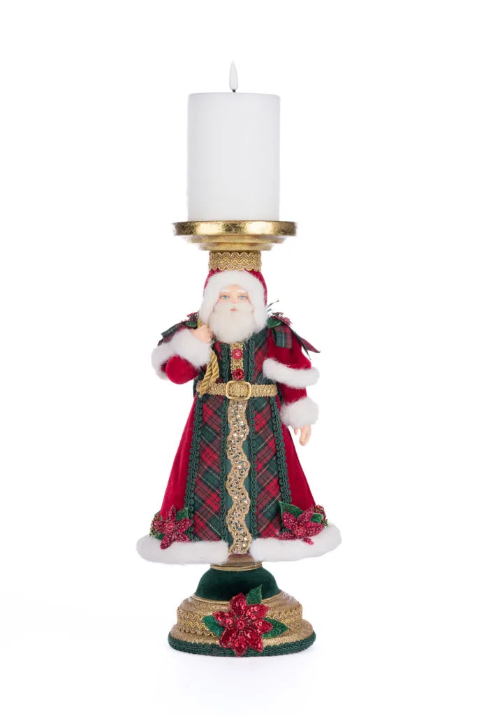 Dimensions: L: 6.5, W: 6.5, H: 13.5, Weight: 2.75, Holiday Magic Santa Candlestick, by Katherine's Collection. Theme: Holiday Magic , Table Top SKU: 28-428324 - ** For over 30 years, Katherine’s Collection has been dedicated to creating a broad range of high quality, original, handcrafted products each year. Each year Katherine’s design team identifies significant trends in color, fashion and style which serve as the foundations for their newest collections. They pride themselves on delighting collectors around the world with original character dolls, handcrafted creations, and holiday décor.