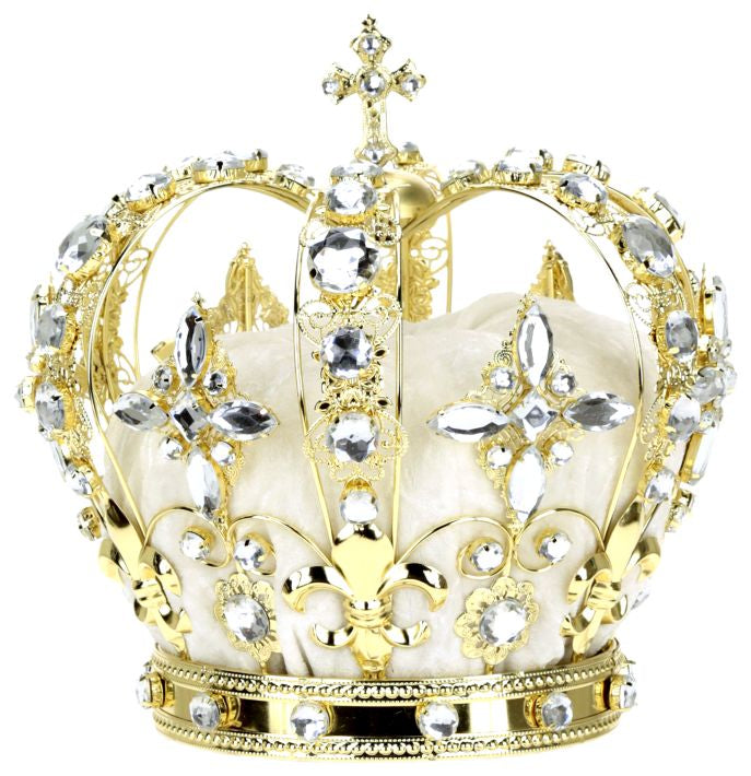 Jeweled King Crown, White - 8.5 Inches