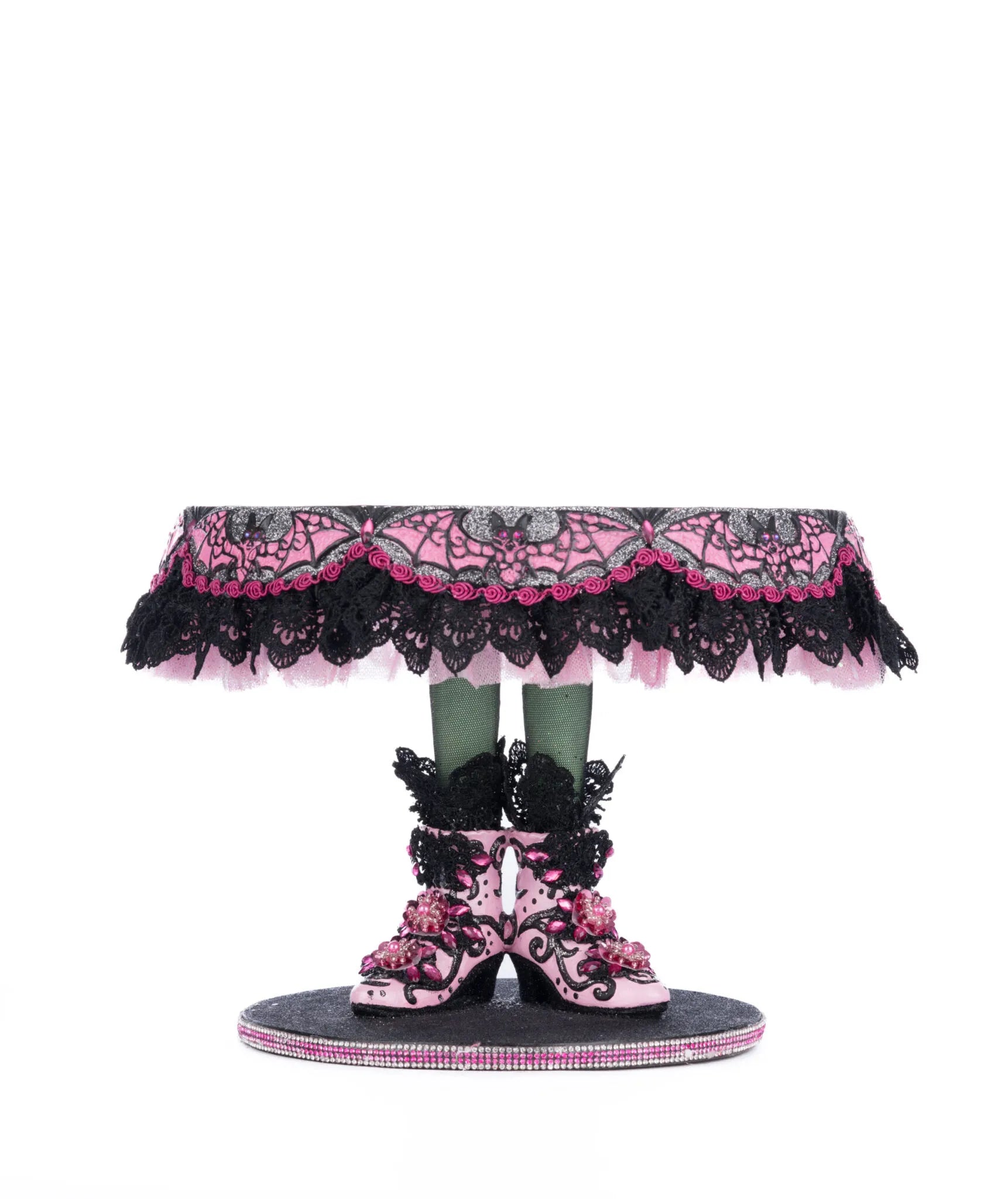 Dimensions: L: 12.5, W: 12.5, H: 8.5, Weight: 3.85, Witch Boots Cake Plate, by Katherine's Collection. Theme: Pink Panic Possession , Table Top SKU: 28-428142 - ** For over 30 years, Katherine’s Collection has been dedicated to creating a broad range of high quality, original, handcrafted products each year. Each year Katherine’s design team identifies significant trends in color, fashion and style which serve as the foundations for their newest collections. They pride themselves on delighting collectors around the world with original character dolls, handcrafted creations, and holiday décor.